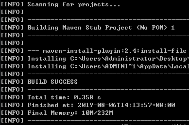 代表成功添加。若build failure 请检查语句中的版本号,groupId,文件名等等是否与实际相符,修改后再运行即可。