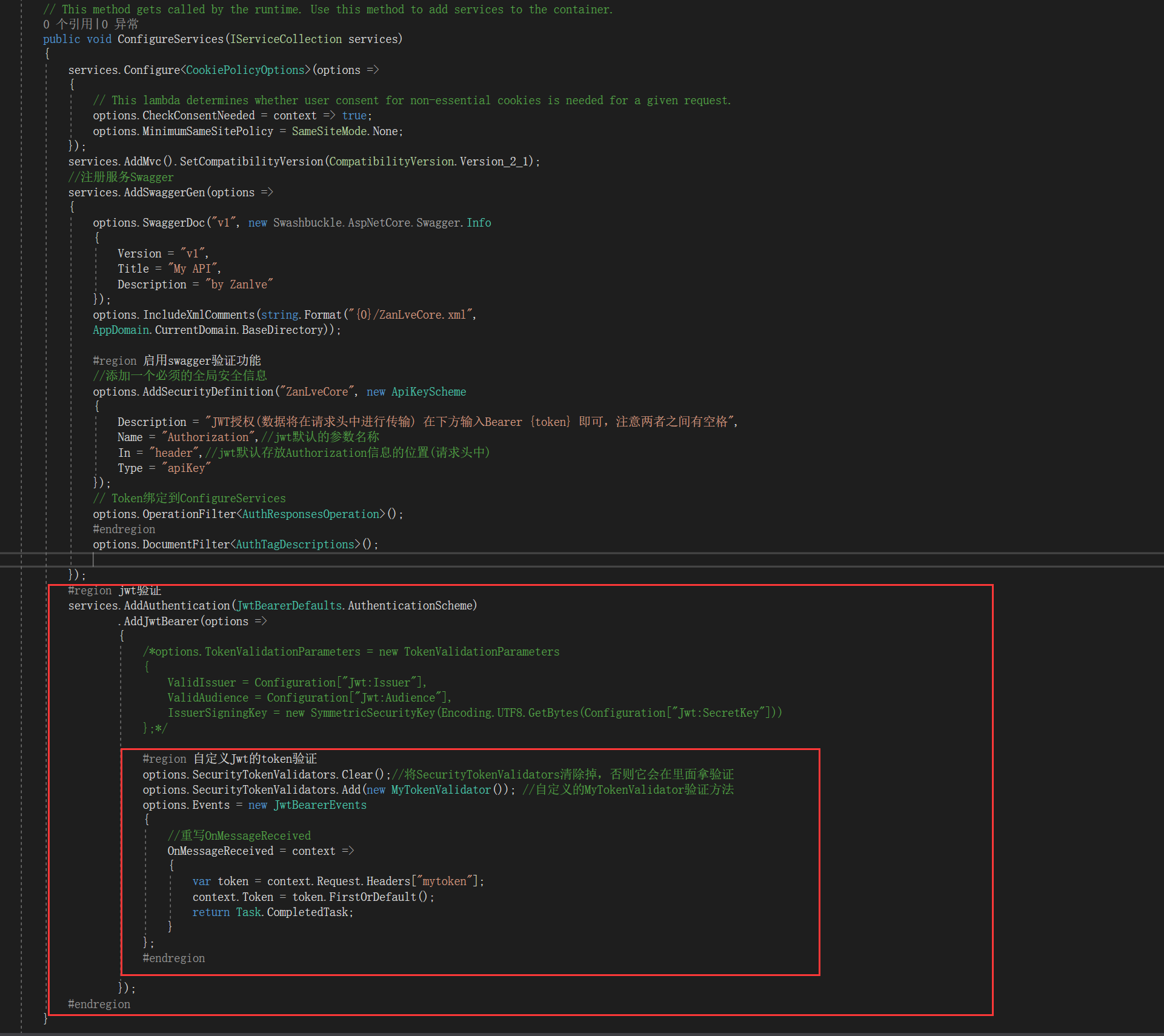 #region 自定义Jwt的token验证