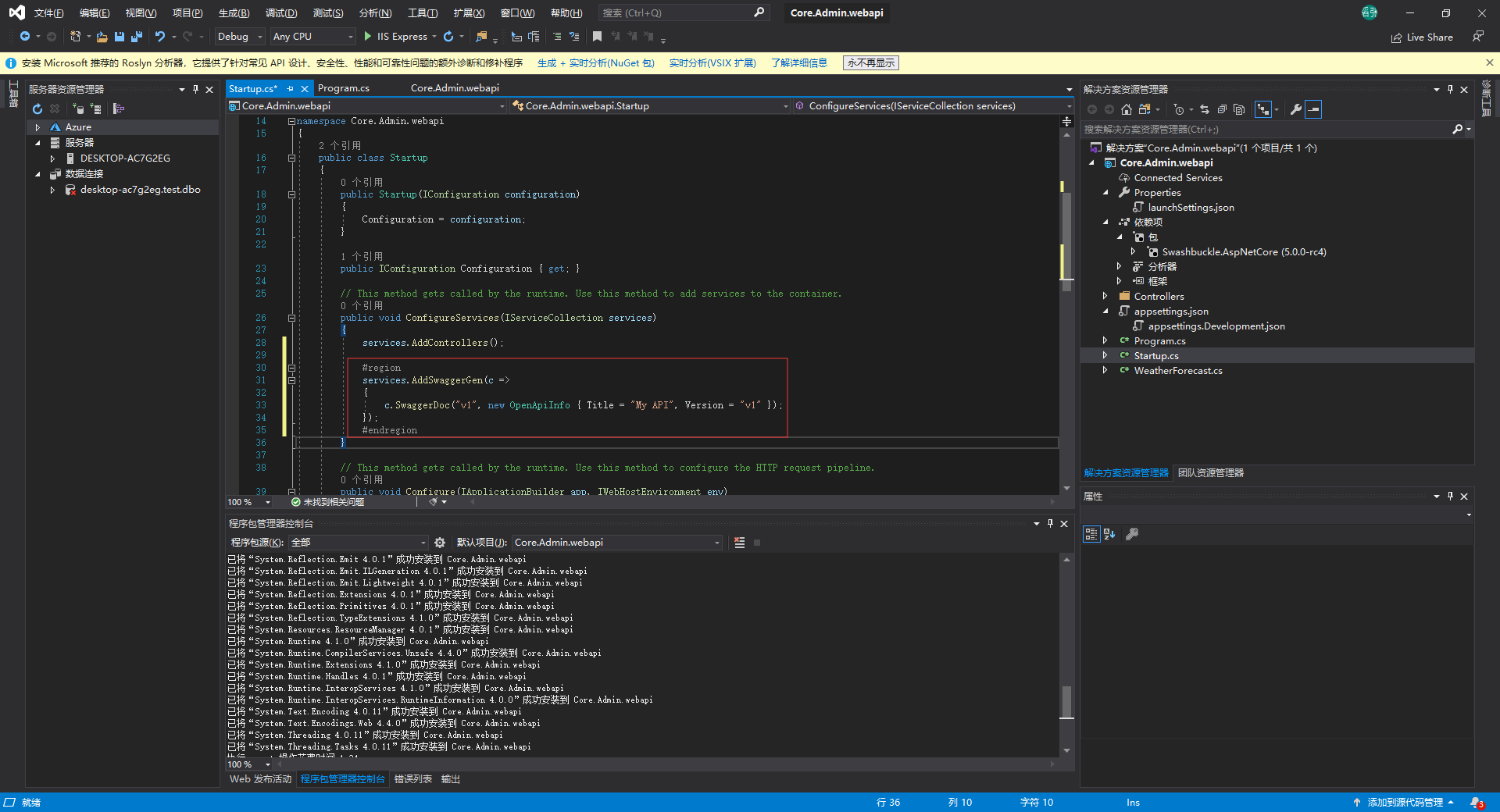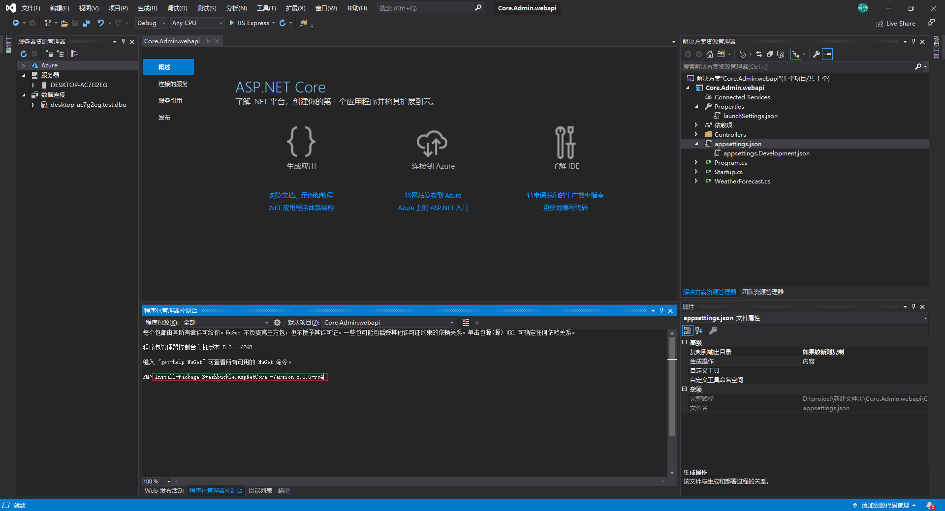 https://docs.microsoft.com/zh-cn/aspnet/core/tutorials/getting-started-with-swashbuckle?view=aspnetcore-3.1&tabs=visual-studio