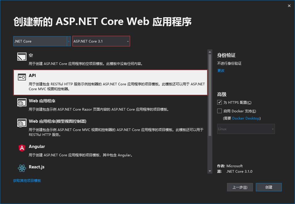 创建ASP.NET Core web项目 ps:不要选错了😂