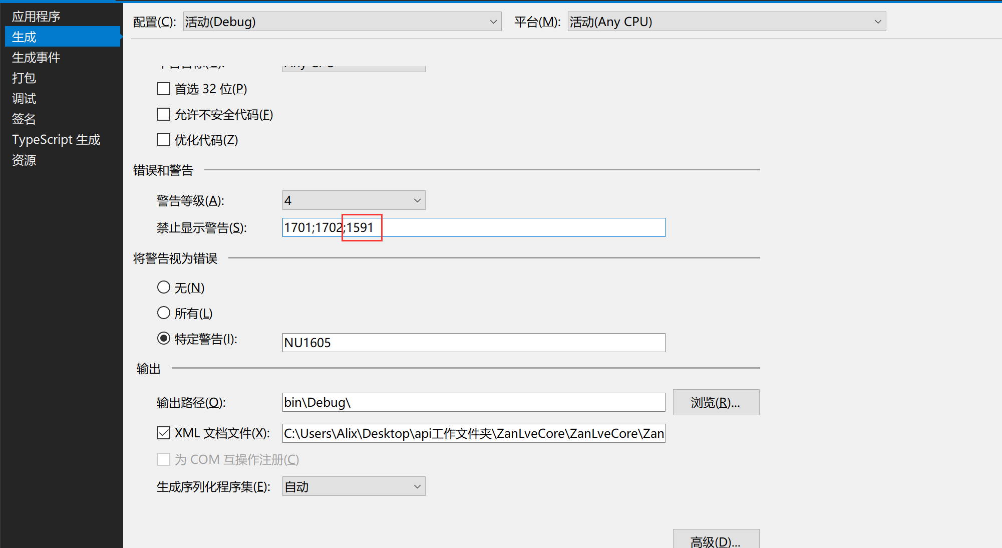 1)在项目属性的 生成 => 输出 中勾选 XML文档文件。