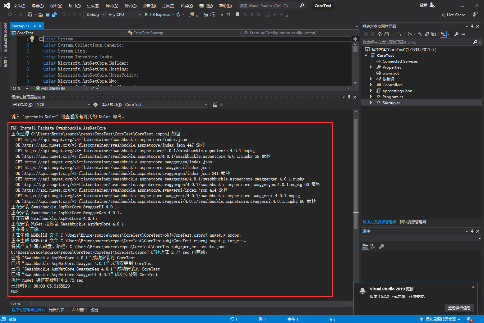 2、安装swagger ,通过 Package Manager 控制台:Install-Package