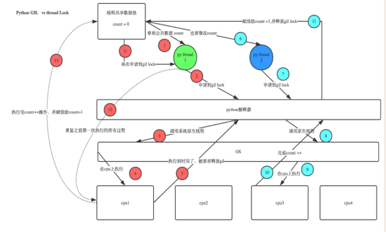 首先需要明确的一点是GIL并不是Python的特性,它是在实现Python解析器(CPython)时