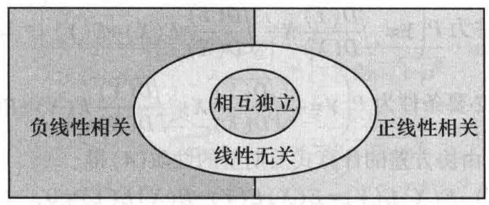 随机变量相互独立和线性无关都刻画了随机变量之间的关系,相互独立时一定线性无关,但反之不一定成立,如下图: