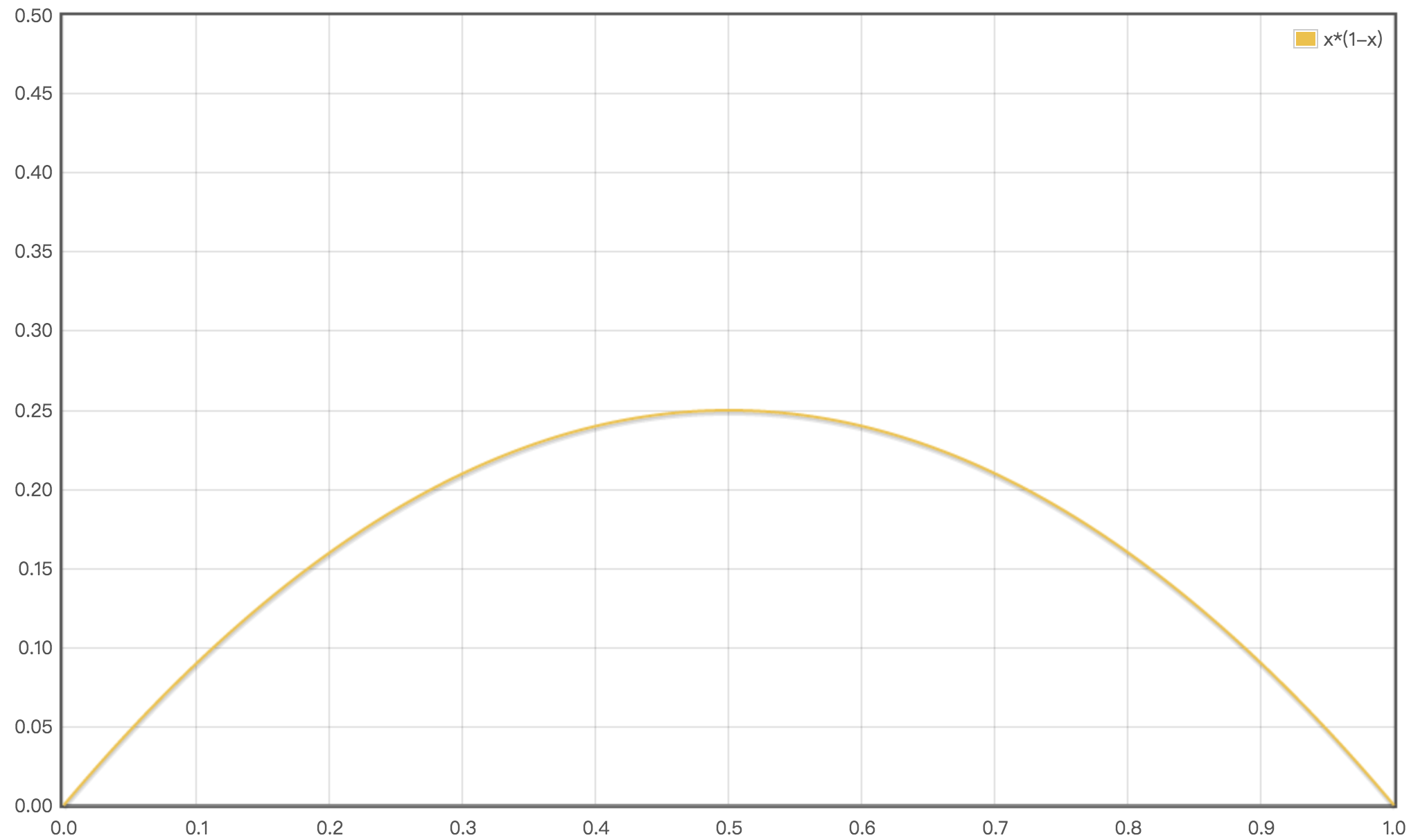 可以看到,当正反事件概率相同,即等概的时候,方差达到最大值。这也是概率分布的最大熵原理。