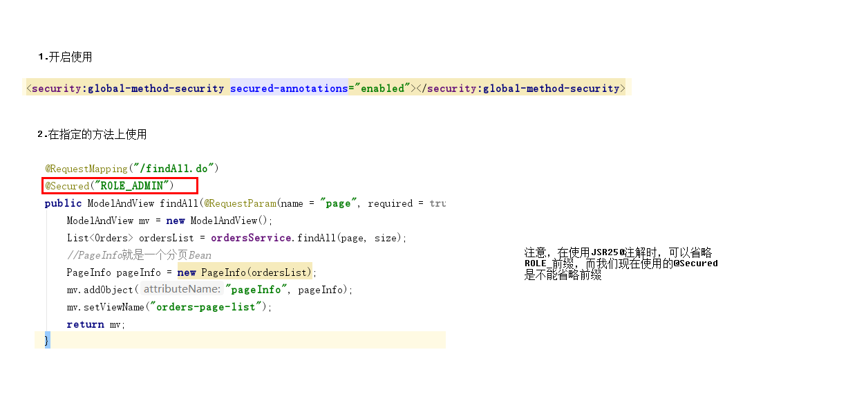 @Secured("ROLE_ADMIN") 注解