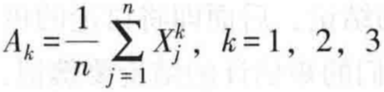 为样本的k阶原点矩。特别的,当k=1时,k阶原点矩退化为样本均值。