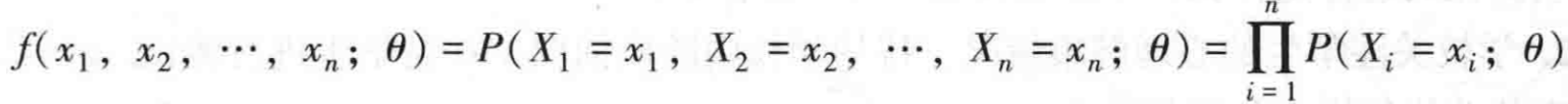 设总体X是一个离散型随机变量,分布律为P(X=x;θ),样本(X1,X2,....,Xn)的联合分布律为: