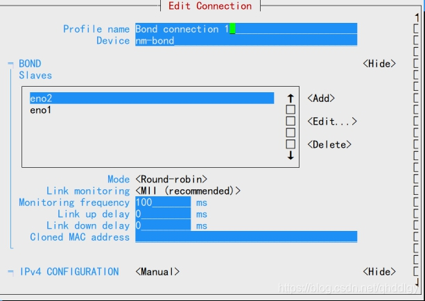 双网卡绑定bond0模式,交换机静态绑定,绑定后带宽为2G。