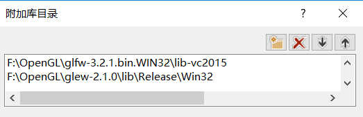 然后选择连接器中的输入,在附加依赖项中输入opengl32.lib,glew32s.lib,glfw3.lib。其中opengl32.lib在我们的系统文件中,glew32s.lib和glfw3.lib在我们附加库目录中添加的文件中。经过这些操作,我们就配置完成了。