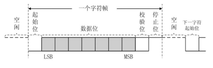 其中,起始位标志着一帧数据的开始,停止位标志着一帧数据的结束,数据位是一帧数据中的有效数据。