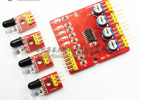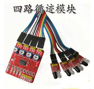 四路循迹分别接到循迹主控板上,VCC接主控板5V,GND接主控板GND,OUT1~OUT4分别接到A0-A3