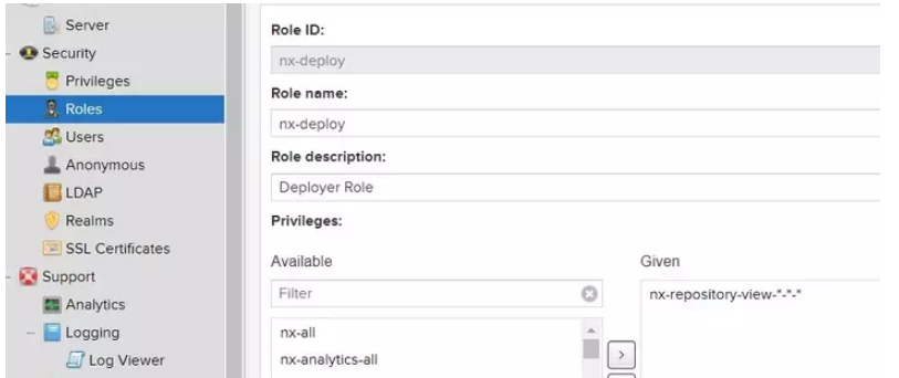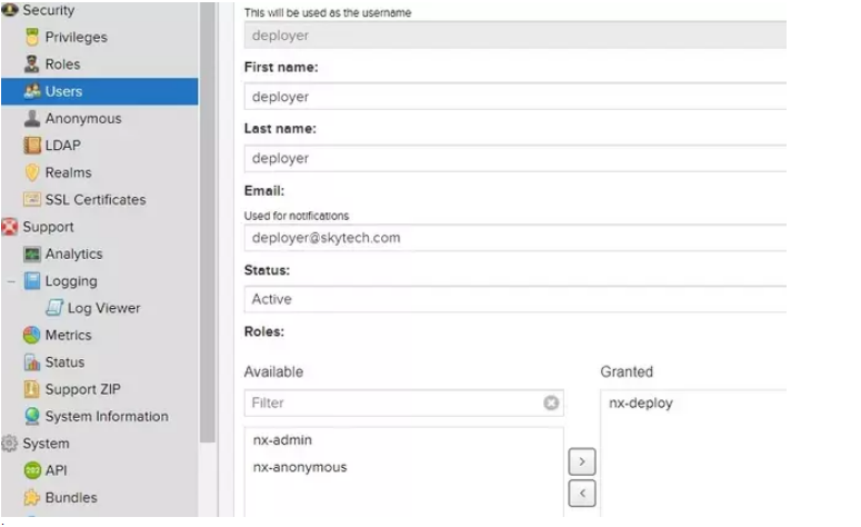 创建deployer 用户,密码也为 deployer,同时设定角色为nx-deploy
