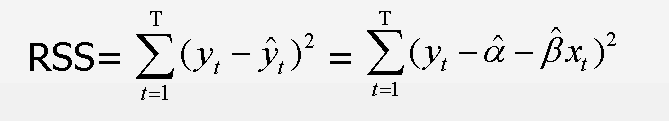 OLS线性回归的基本原则:最优拟合曲线应该使各点到直线的距离的平方和(即残差平方和,简称RSS)最小: