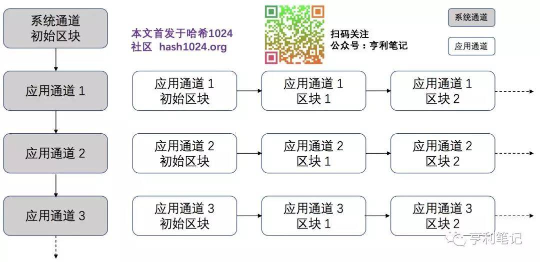 目前通道分为系统通道(System Channel)和应用通道(Application Channel)。排序节点通过系统通道来管理应用通道,用户的交易信息通过应用通道传递。对一般用户来说,通道是指应用通道。系统通道与应用通道的关系如下图: