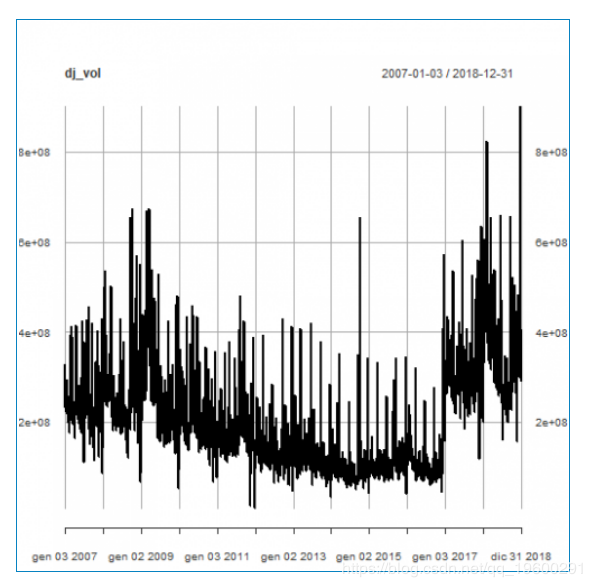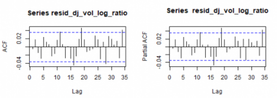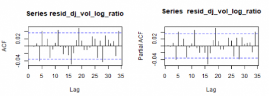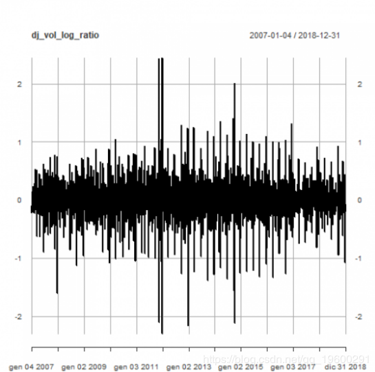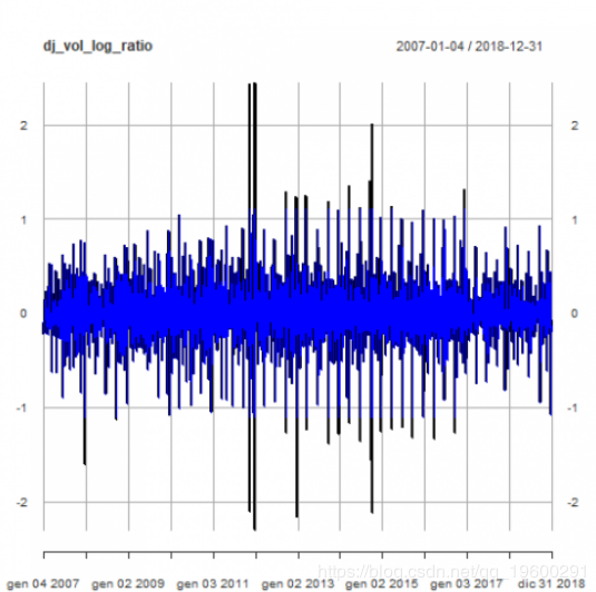 我将建立道琼斯工业平均指数(DJIA)日交易量对数比的ARMA-GARCH模型。