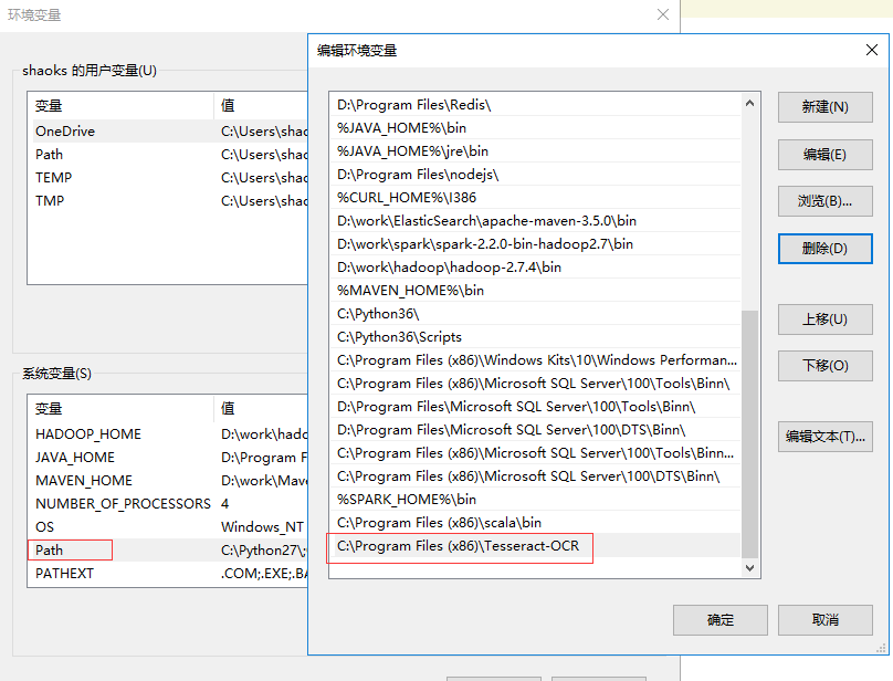 安装目录C:\Program Files (x86)\Tesseract-OCR,安装完成后,设置环境变量