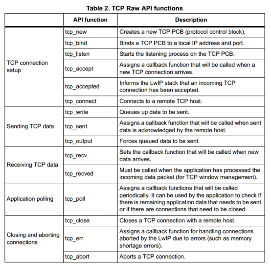 由此可以看到LWIP有三种API,在本文中,使用Raw API。