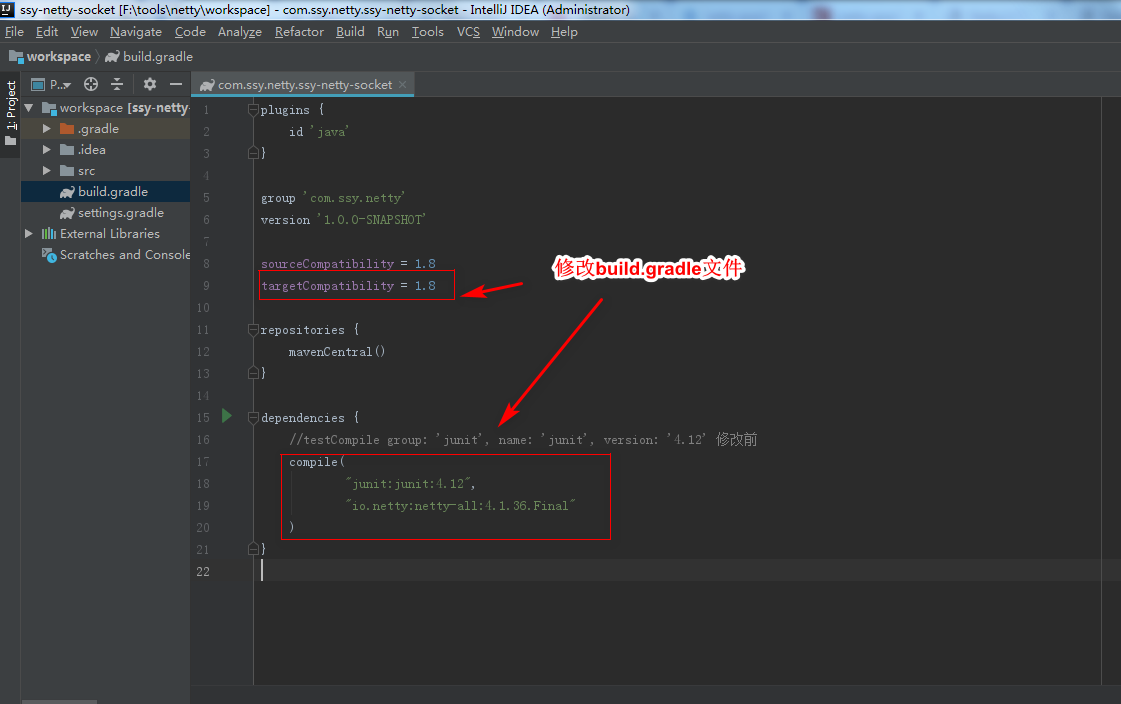 第二步:打开上节创建的项目,修改build.gradle文件如下图: