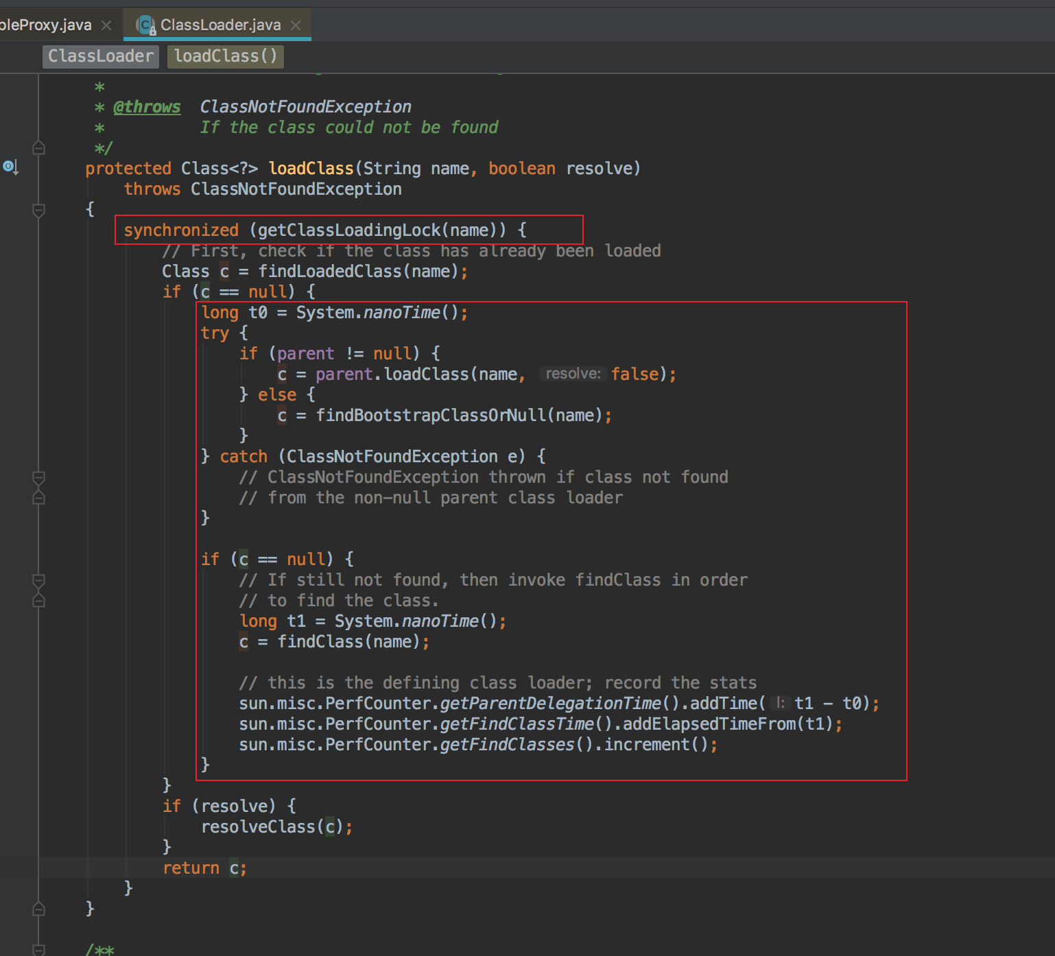 并且可以看到ClassLoader的loadClass在加载类时