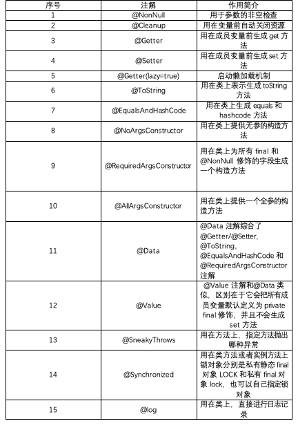 三、Lombok有哪些注解,他们的作用分别是什么?