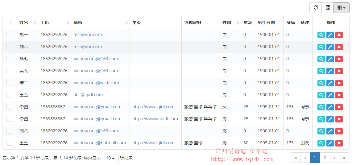 不过实际上我们使用 bootstrap-table的JS配置功能肯定比这个复杂很多,下面界面效果是实际表的数据展示。