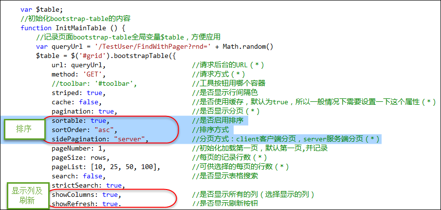 22 //showColumns: true, //是否显示所有的列