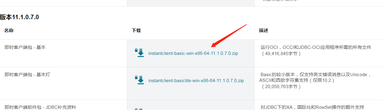 下载 instantclient-basic-win32-11.1.0.7.0.zip (根据自己版本来下载)