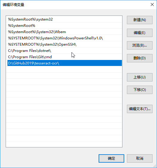 | 需要添加环境变量 | D:\GitHub2019\tesseract-ocr\ | |