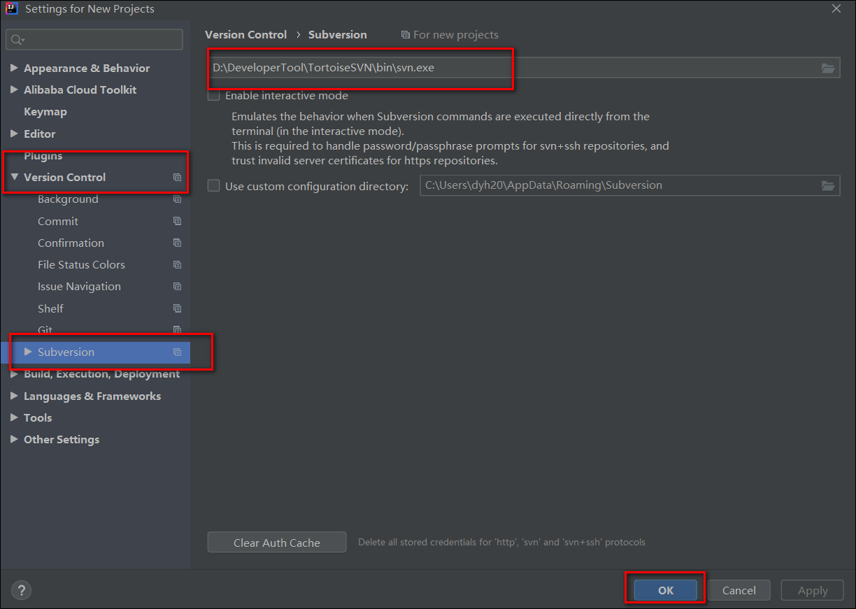 打开Settings,找到Version Control => Subversion: