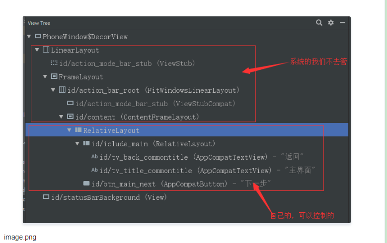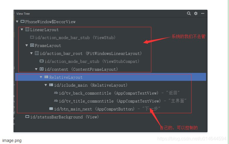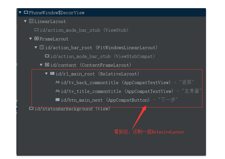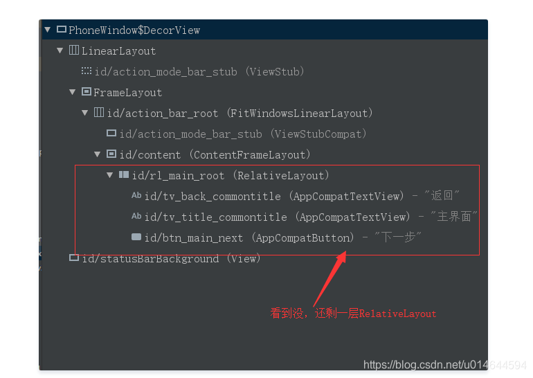 merge标签是作为include标签的一种辅助扩展来使用的,也就是需要和include一起使用,它的主要作用是为了防止在引用布局文件时产生多余的布局嵌套。我们先看看我们现在的视图层级(通过android studio自带的Layout inspector):