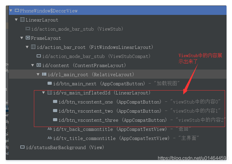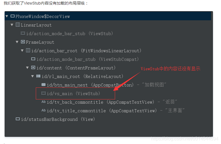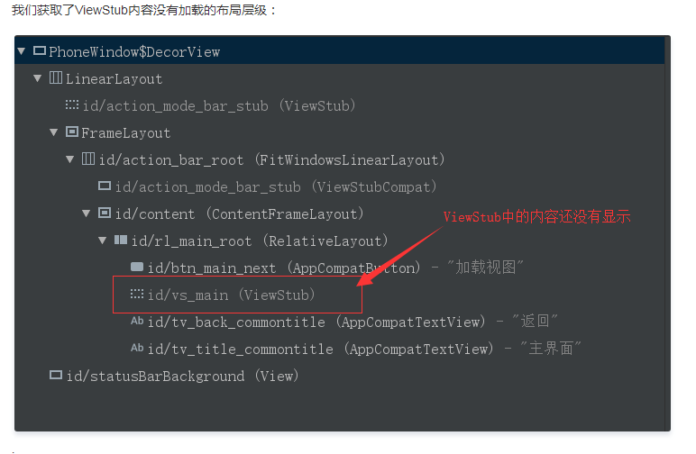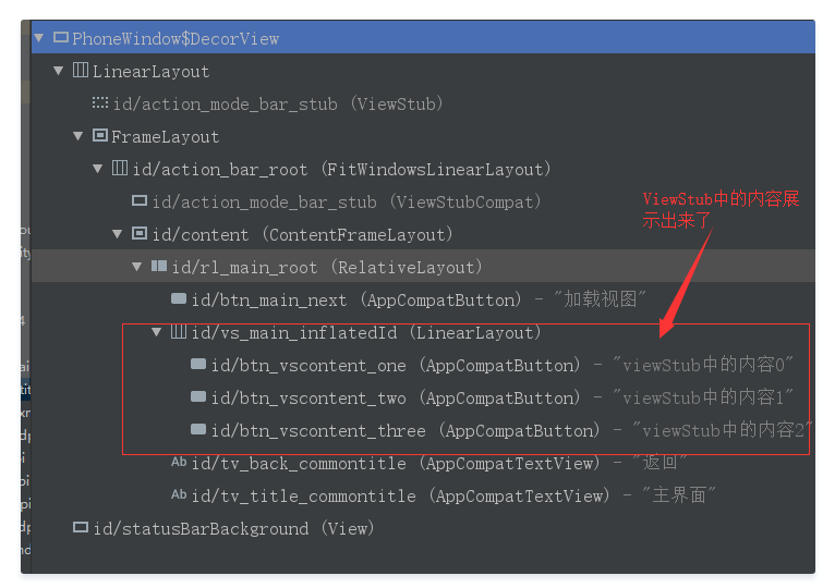 //这里注意ViewStub只是一个容器,所以在其显示后,其中的view就是在Activity中展示,所以直接findViewByid即可