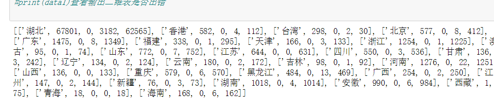 Total.append([china[i]['name'],china[i]['total']['confirm'],