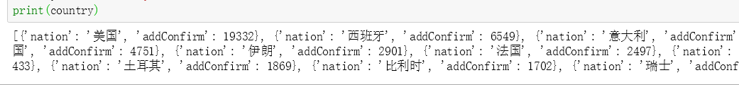 Country.append([country[i]['nation'],country[i]['addConfirm']])