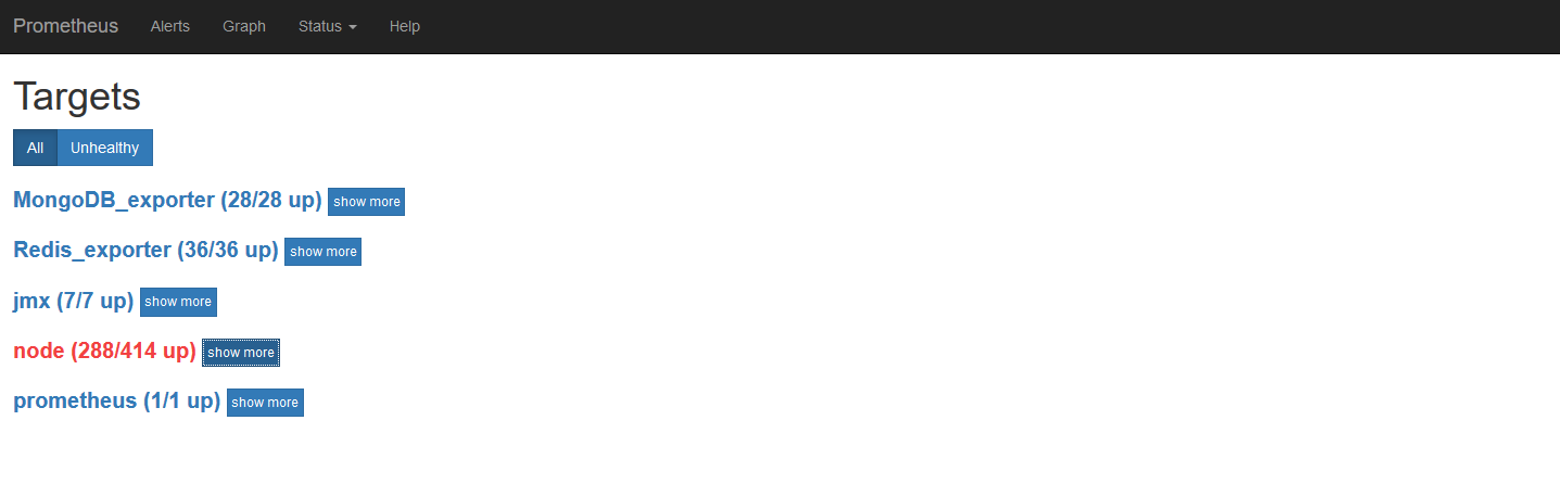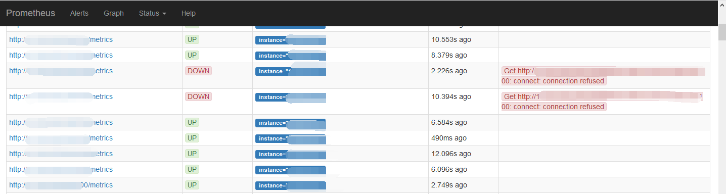 - 如果prometheus能够正常的拿到客户端的信息,则会显示up,否则状态为down。