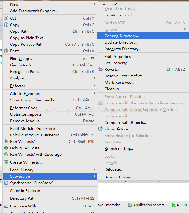 8、右键项目选择-->Subversion-->Commit Directory提交项目
