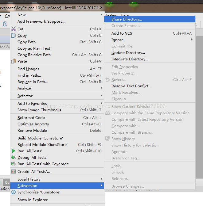 IDEA取消SVN关联,在重新分享项目