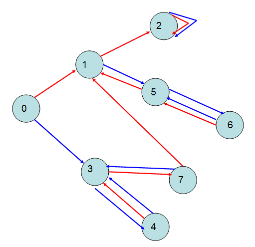 事实上,这个条件也是充分的,假设分别以$u$和$v$为根,并把两个完美匹配给取并,那么一定会存在一条从$u$到$v$的路径(因为只有$u,v$的度数为$1$,其余度数都是$2$)。这个代表什么呢?它表示,我们先随意取一个根跑个完美匹配,然后建一张新图,如果对于某个$i$,有$x,y\in E_i$且$E_i$的匹配对象是$x$,那么就连边$(x,y)$,然后我们从根出发开始跑,如果对于其它所有的根也满足条件,那么$u$肯定能遍历到所有其他节点(相当于沿着路径修改匹配)
