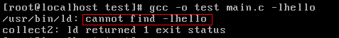 这是因为上面的命令在系统默认的路径下查找hello函数库,而我们并没有将libhello.a库放在系统默认搜索路径下,所以需要显示指定库函数的路径为当前目录。