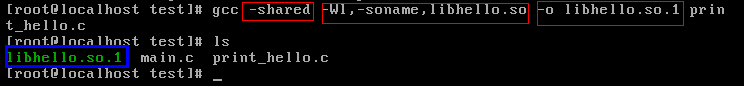 其中-shared选项告诉编译器生成一个动态链接库;-soname,libhello.so表示生成动态库的别名是libhello.so;-o libhello.so.1选项择表示生成名字为libhello.so.1的实际动态链接库文件。