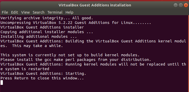 主机:Windows 10家庭中文版,VirtualBox 版本 5.2.22 r126460 (Qt5.6.2),Ubuntu 18.04,