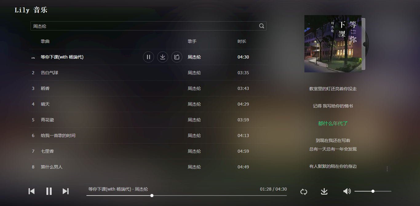 就可以直接做一个 for in 循环将每句歌词添加到歌词区域,将时间添加到每句歌词的样式控制class