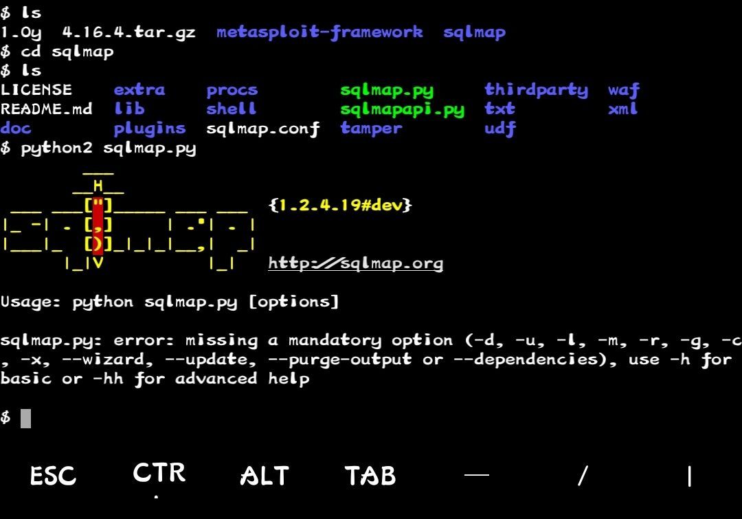 完成后,会在当前目录下生成一个sqlmap文件夹,可用ls命令进行查看。