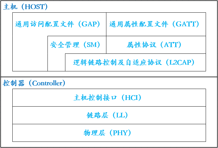 LL(Linker Layer):链路层,用于控制设备的射频状态,设备将处于五种状态之一:等待、广告、扫描、初始化、连接。广播设备不需要建立连接就可以发送数据,而扫描设备接收广播设备发送的数据;发起连接的设备通过发送连接请求来回应广播设备,如果广播设备接受连接请求,那么广播设备与发起连接的设备将会进入连接状态。发起连接的设备称为主机,接受连接请求的设备称为从机。