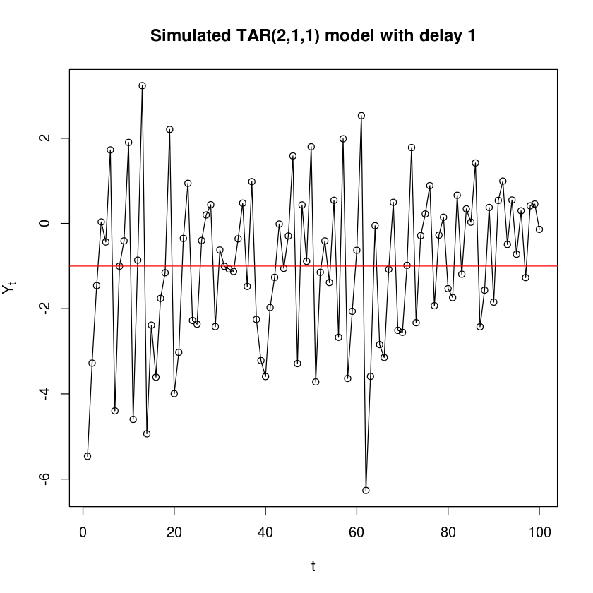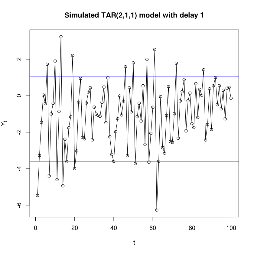 TAR模型通过抑制噪声项和截距并将阈值设置为0来获得: