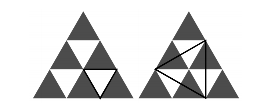 度为$n$的Pyramid是一个由$\frac{n(n+1)}{2}$个三角形组成大三角形。比如度为3的Pyramid是下面这样子。