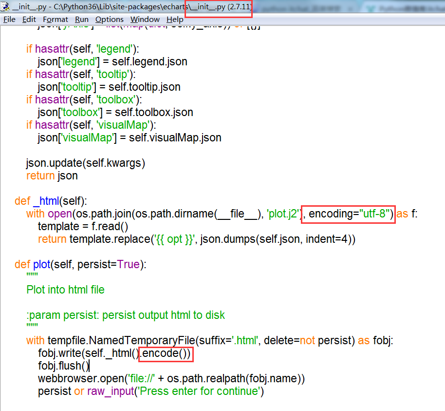 注意 : echarts,是python与百度链接的一个模块,但是支持python3的时候回出现问题--编码问题.需要下载之后对其源码包进行修改