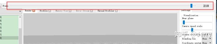这实际上对应于这个椅子的两个碰撞盒,一个是简单碰撞盒凸包,一个是复杂碰撞盒模型自身三角形, 这个会在下一章节介绍。PVD软件顶上还有一个显示帧数的拖拉条,如下: