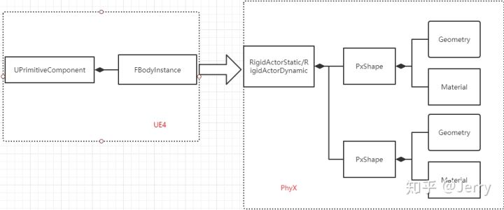 目前版本还是依赖于第三方的PhysX,UE4自身提供PrimitiveComponent,拥有BodyInstance,上面记录了PhysX所需要的物理数据,会将这些信息传递给PhysX所创建的物理世界,然后由PhyX进行处理,并得到其返回的结果。