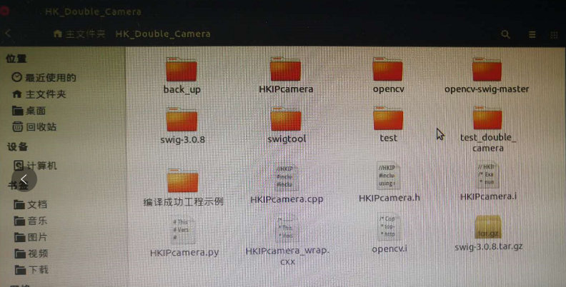 最后,工程目录下新建test文件夹,将libHKIPcamera.so改名为_HKIPcamera.so,与swig封装时产生的HKIPcamera.py文件一同放置在test目录(/home/rcnn/HK_Double_Camera/test)下,新建如下test.py文件。